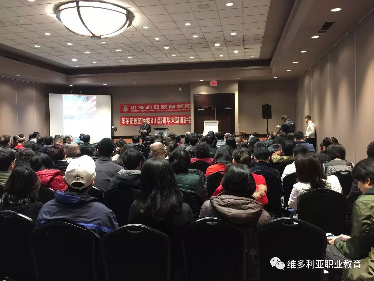 图片为 Bill 老师2017年2月在温哥华举办金融演讲会(600多人受益)