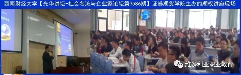 图片为 Bill 老师在西南财经大学光华讲坛举办金融讲座(数千人听讲,座无虚席)