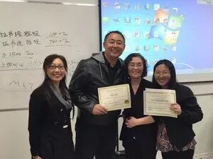喜讯五:Montreal和Vancouver两地学员29人,95%均已取得口译语言资格证书和操守证书。Vancouver学员的集体成绩名列前茅!Montreal的学员更喜获法语口译证书,并有学员在获得医疗专业证书后成功签约影视口译员!